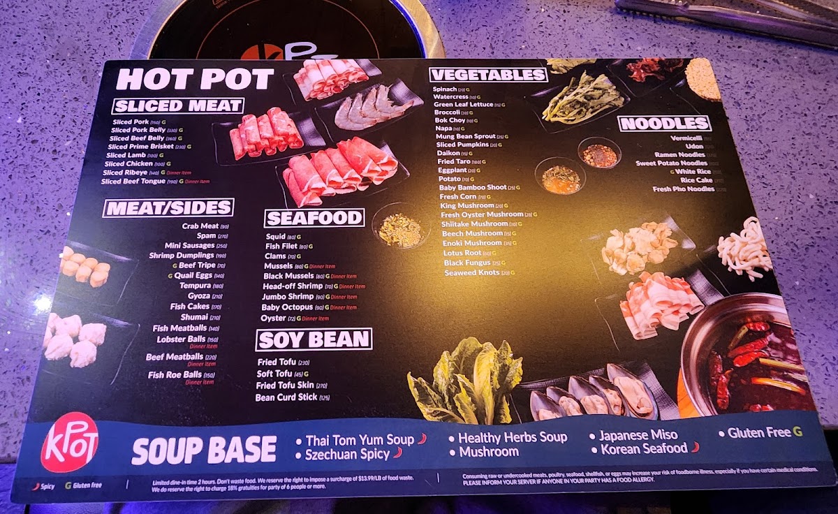 At KPOT Korean BBQ & Hot Pot, the menu offers a dynamic fusion of Korean barbecue and hot pot experiences that delight every palate. The expansive meat selection caters to all tastes, including gluten-free and vegan options, ensuring everyone leaves satisfied. The highlight is the interactive hot pot, where fresh ingredients are delivered promptly to your table, letting you craft flavorful broths like their praised miso base. Complimenting this is the thoughtfully curated sauce bar, complete with recipes posted for guests to personalize their dipping sauces.